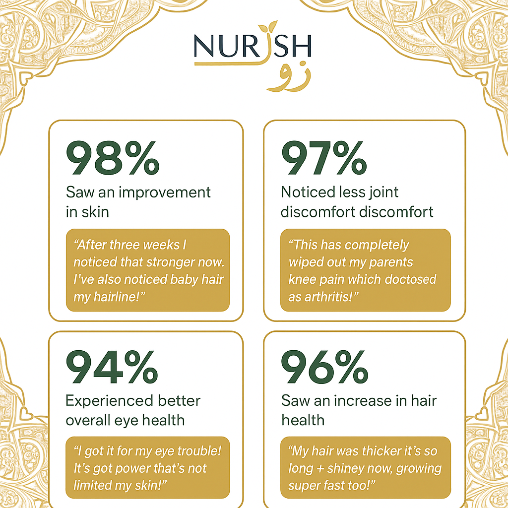 Alhamdulillah, seeing our customers glow with confidence brings us joy and gratitude. Nurish Halal Collagen Protein restores strength, beauty, and balance the halal way — a reminder that health and radiance are blessings from Allah.